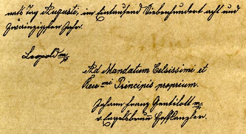 Signatur von Fürst-Erzbischof Leopold Graf Firmian (Mitte links) und seines